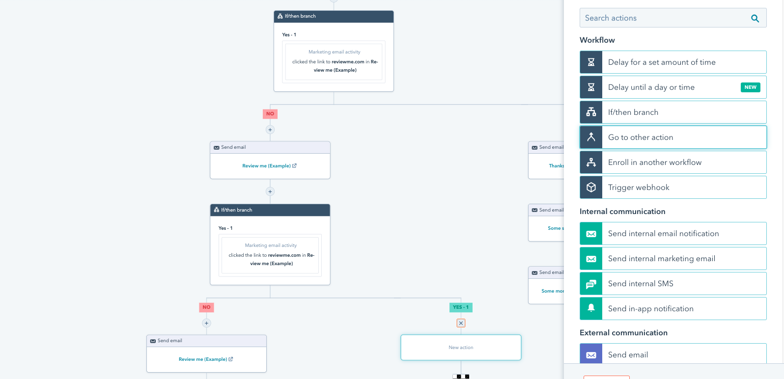 Understanding the new “Go to other action” tool in HubSpot workflows